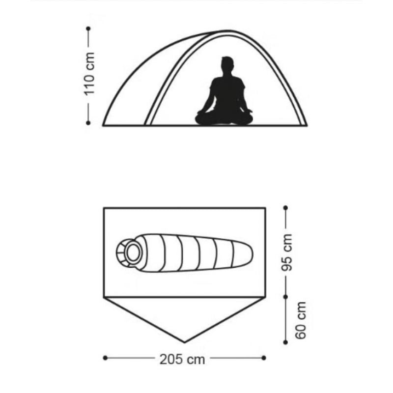 Rinkinio turinys: palapinė, rėmas, apsauginis audeklas, kuoliukai, kilimėlis, transportavimo dangtis ir instrukcijos,
