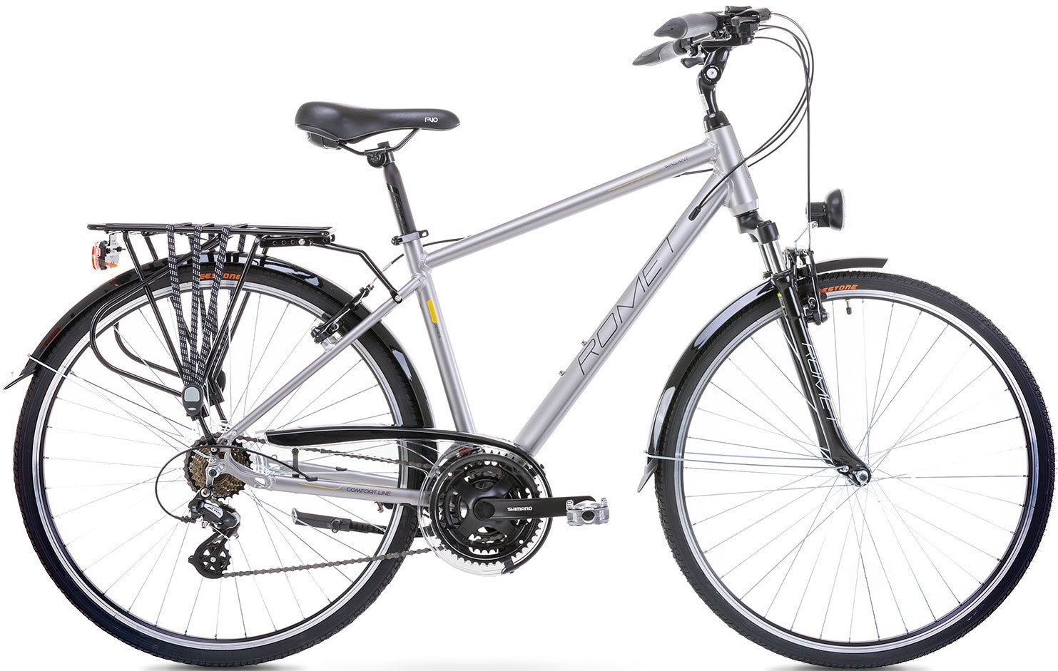 ROMET TREKKING kolekciją sudaro patogūs ir universalūs moteriškų ir vyriškų turistinių dviračių modeliai, daugiausia skirti ilgoms kelionėms su bagažu, taip pat kasdienėms kelionėms ar neskubrioms išvykoms už miesto. Jis pasirengęs nešti bagažą, apšviesti kelią ir apsaugoti nuo lietaus - jame yra beveik visi reikalingi priedai. Kiekviename iš siūlomų modelių standartinėje įrangoje yra galinė bagažinė, purvasaugiai, galingas priekinis ir galinis apšvietimas, stabili pastatymo kojelė ir grandinės apsauga, todėl šie dviračiai tinkami daugiadienėms kelionėms ir važiavimui į darbą net ir prastesnėmis oro sąlygomis. Siauros turistinės padangos puikiai tinka greitam važiavimui asfaltu, jomis taip pat galima važiuoti geru kietu bekelės keliu. Kad važiuoti būtų lengva ir patogu, ROMET TREKKING modeliuose yra naudojamos reguliuojamos vairo iškyšos, užtikrinančios geriausią važiavimo padėtį. Balneliai yra pakankamai platūs ir minkšti, kad galėtumėte važiuoti valandų valandas. Patikimos pavaros su trejomis žvaigždėmis ir dideliu pavarų skaičiumi leidžia važiuoti su bagažu lengvai ir smagiai, net kai kelias veda į kalną, ar jei norite pasiekti didesnį greitį.