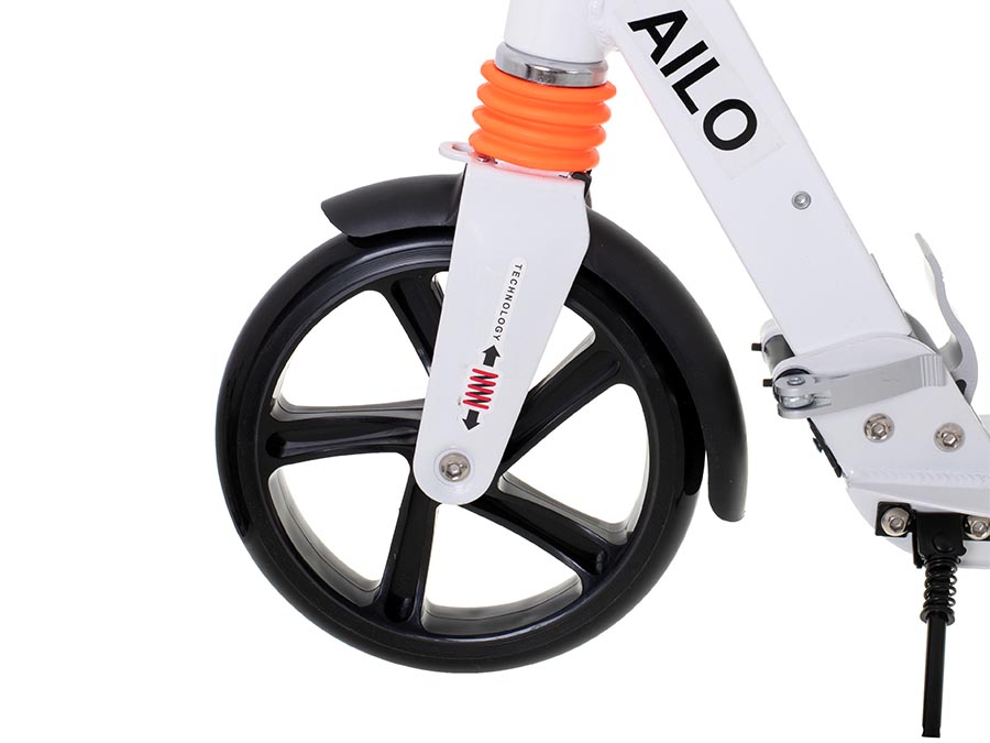 AILO paspirtukas labai gerai pritaikytas važinėti mieste. Jis pagamintas iš labai tvirto aliuminio lydinio, todėl visi reljefo nelygumai jam nekelia grėsmės.