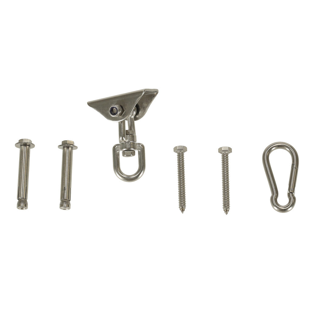 Į rinkinį įeina tokios dalys kaip pasukamas lubų kablys, užkabinamas kablys, virvė ir keturi varžtai - kitaip tariant, viskas, ko jums prireiks!