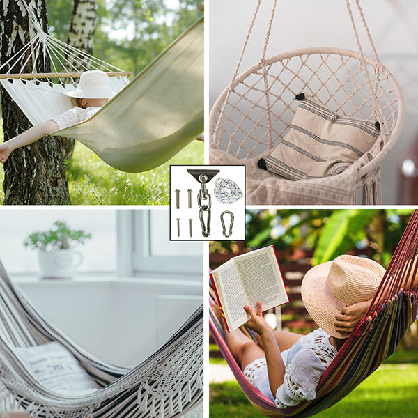 Poilsis kieme tikrai bus malonesnis, jei turėsite hamaką arba erškėtrožės lizdą. Tačiau turite nepamiršti, kad norint pakabinti tokius daiktus, jums tikrai prireiks tinkamų priedų. Laimei, šiame rinkinyje yra visos reikalingos dalys, kad galėtumėte pakabinti savo svajonių braziliškąjį hamaką!