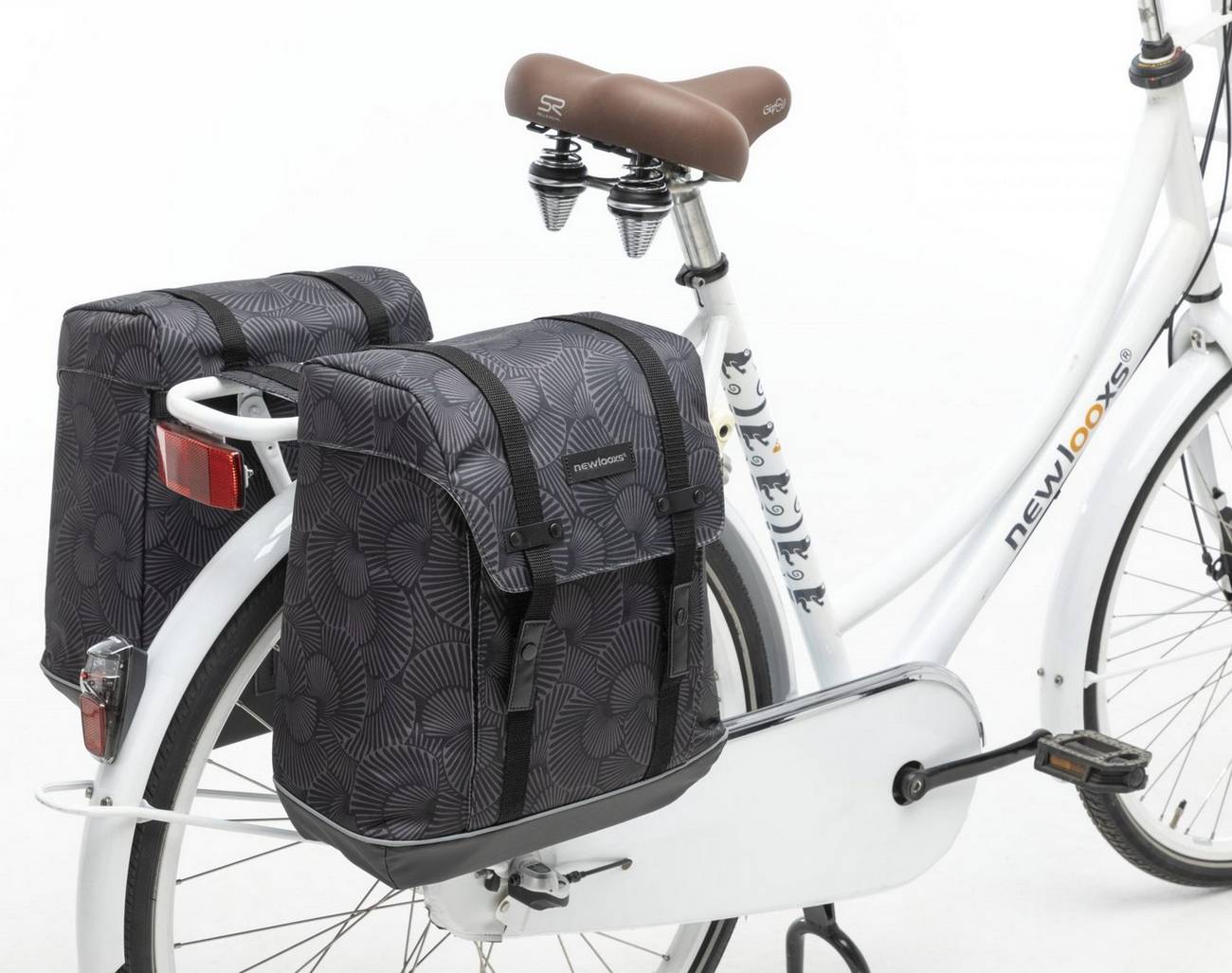 The Alba Double are double panniers, made of water-resistant polyester. So a little rain wont hurt them. The flaps fall neatly over the bags, and you can close them properly with press-studs. Aside from the large main compartments, these panniers also have additional zippered front compartments. Because of the reflective material all around, you will also be extra visible in the dark. The bags are sturdy, and they retain their shape because of the plastic panels you can insert at the bottom and the sides. This way the bags will keep their shape, and you will be able to fit even more in them.
