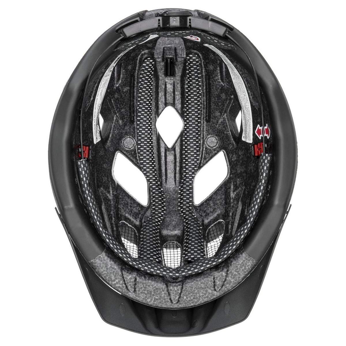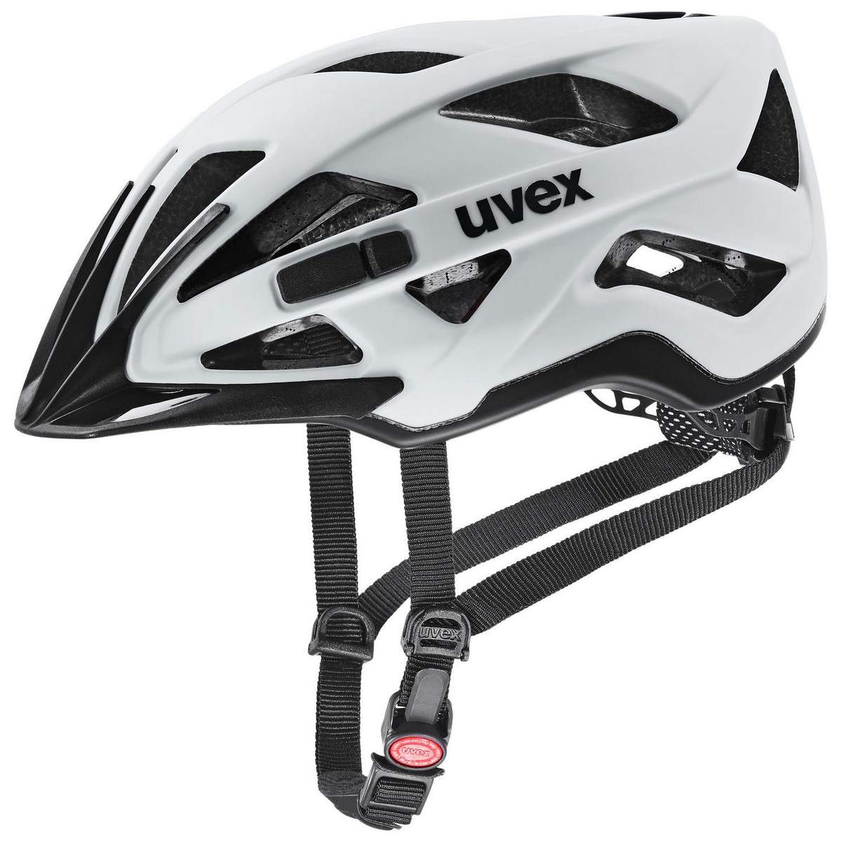 Pure cycling: UVEX active cc stands for cycling at its finest. Mountain bike or trekking bike, on cycle paths, trails or forest tracks. Perfect for this all-rounder. Cyclists need a helmet which offers them the best protection in many situations - on wide cycle paths or forest tracks. UVEX active cc is perfect for all of them. 19 ventilation openings ensure the head stays cool, whether riding uphill or downhill. Double inmould construction creates a light, stable helmet, which weighs from just 280 grams. The thin polymer outer hardshell protects the impact-absorbing EPS inner shell, and the head, in the event of a fall. The 3D IAS fit system ensures UVEX active cc adjusts to fit the head perfectly, for both height and width. High quality pads are removable and washable, and provide extra ventilation. Anyone who doesnt just ride in the mountains, but also in the city, will find the optional plug-in LED increases visibility in traffic.