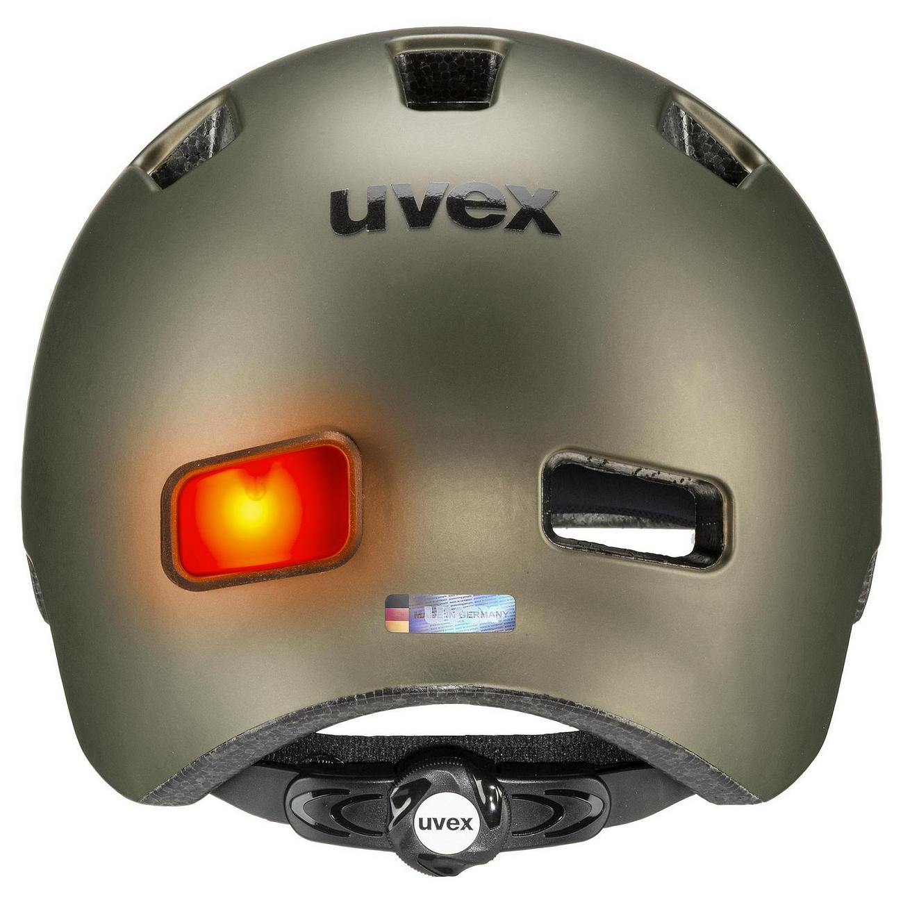 Casual city helmet with integrated plug-in LED and reflective straps